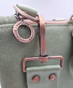 Introducing the Ankor Laptop Bag, a stunning handcrafted masterpiece that redefines the way you carry your essentials. Crafted from luxuriously soft Mora Faux Leather in a captivating Willow Green and Melon Blush palette, complimented with Brushed Copper Coloured premium hardware, this bag exudes sophistication and style.