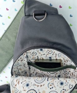 Created using Sage green and Charcoal Mora Faux Leather, with coordinating cotton lining